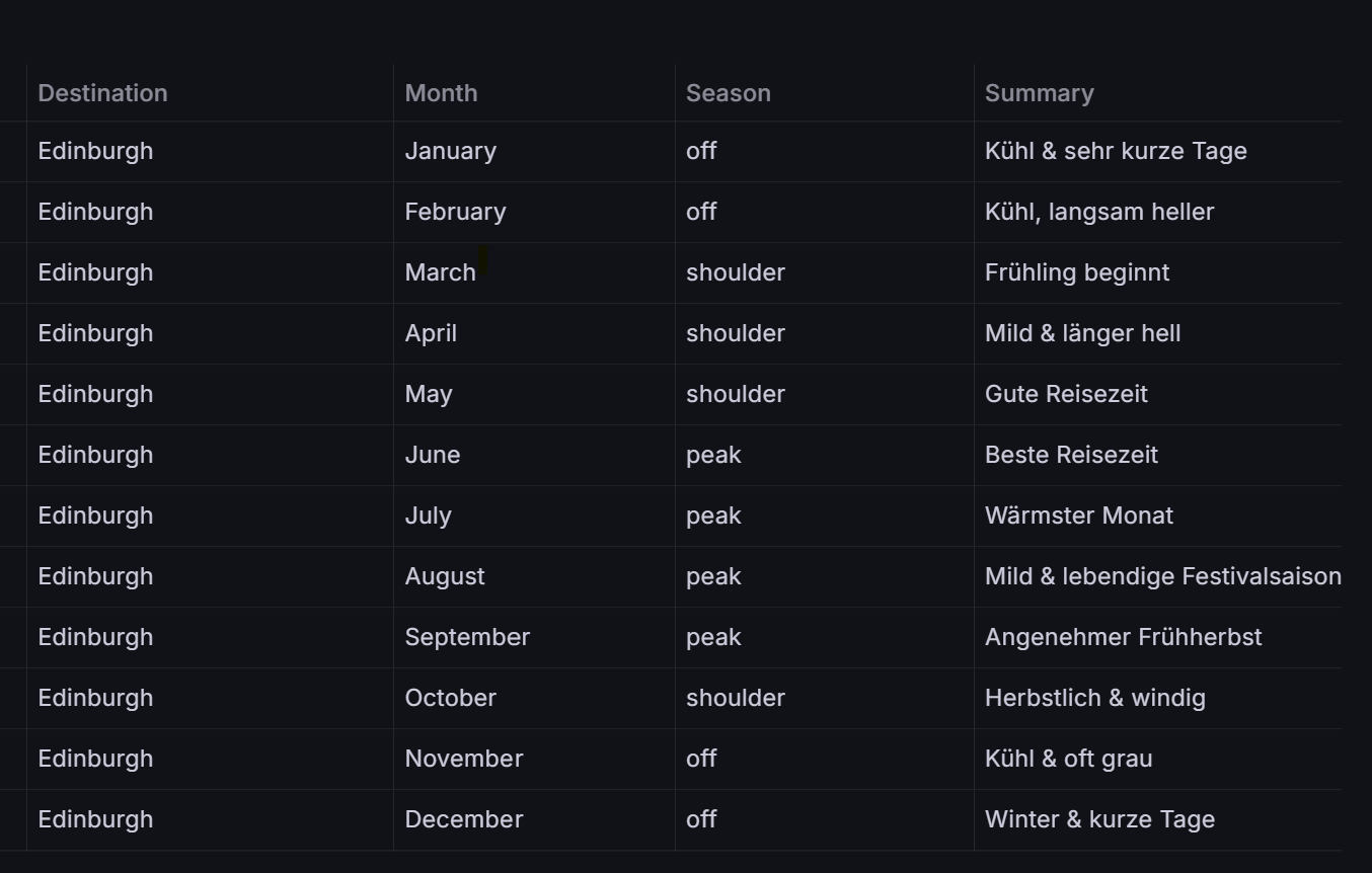 Der Juni/Juli gehört zu einer der besten Reisezeiten des Jahres für Edinburgh mit Jahreshöchsttemperaturen und vergleichsweise wenigen Regentagen.