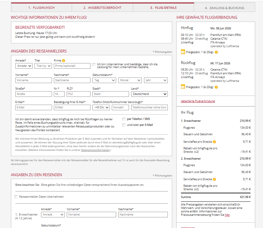 Das Angebot gilt für 2 Personen und beträgt p.P. ~211€.
