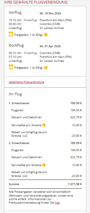 Der Rundflug Deal verzeichnet einen stattlichen Discount von mehr als 23% zum regulären Marktpreis der Route (FRA – CMB).